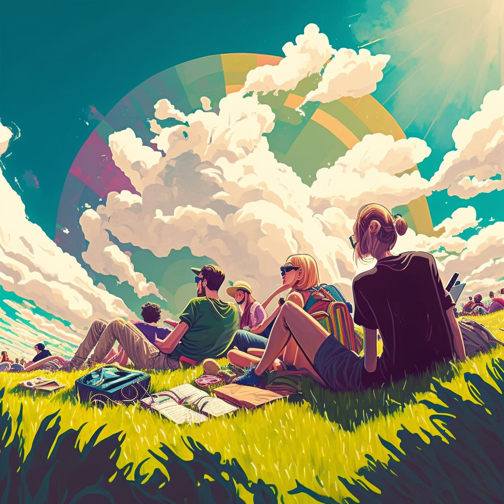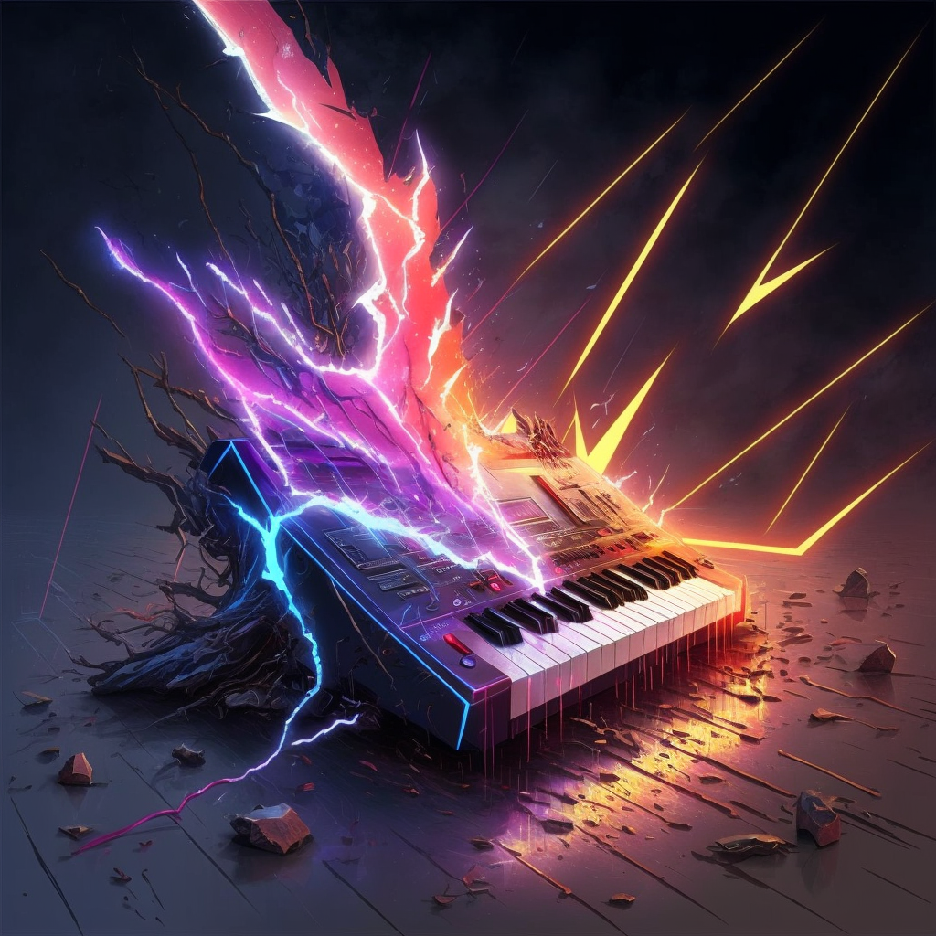 The music is built upon an atmospheric foundation of warm, driving 1980s synthwave bass and electro drum beats. The instrumental is layered with dreamy, shimmering pads and vibrant, upbeat chord stabs that vaporize into the horizon.